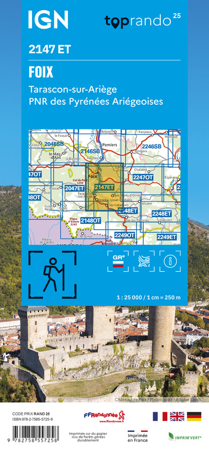 L'indispensable carte de randonnée IGN 2147ET. D'une très grande précision elle contient tous les détails existants sur le terrain : voies de communication jusqu'au moindre sentier, constructions jusqu'au hangar, bois, arbre isolé, rivière, source... Sans oublier la représentation du relief par des courbes de niveau. Les sentiers balisés et les informations touristiques sont également représentées.