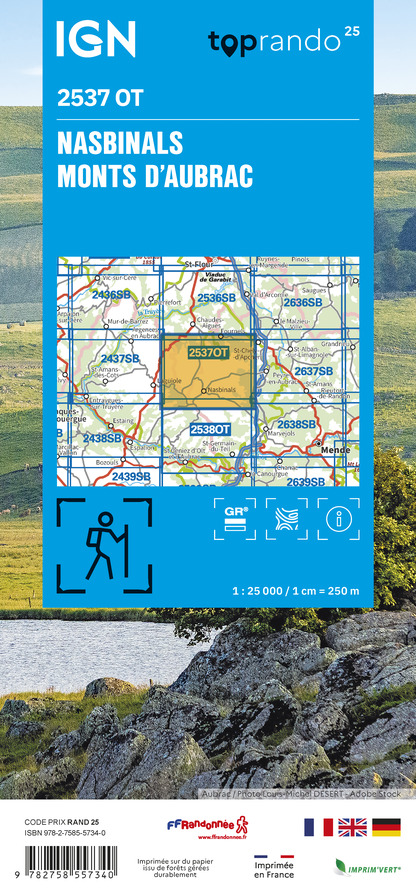 L'indispensable carte de randonnée IGN 2537OT. D'une très grande précision elle contient tous les détails existants sur le terrain : voies de communication jusqu'au moindre sentier, constructions jusqu'au hangar, bois, arbre isolé, rivière, source... Sans oublier la représentation du relief par des courbes de niveau. Les sentiers balisés et les informations touristiques sont également représentées.