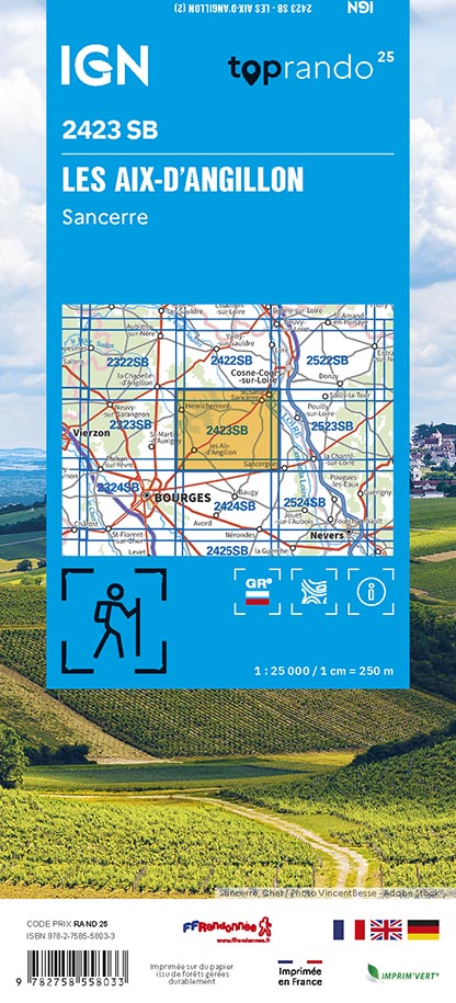 L'indispensable carte de randonnée IGN 2423SB. D'une très grande précision elle contient tous les détails existants sur le terrain : voies de communication jusqu'au moindre sentier, constructions jusqu'au hangar, bois, arbre isolé, rivière, source... Sans oublier la représentation du relief par des courbes de niveau. Les sentiers balisés et les informations touristiques sont également représentées.