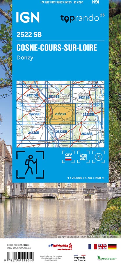 L'indispensable carte de randonnée IGN 2522SB. D'une très grande précision elle contient tous les détails existants sur le terrain : voies de communication jusqu'au moindre sentier, constructions jusqu'au hangar, bois, arbre isolé, rivière, source... Sans oublier la représentation du relief par des courbes de niveau. Les sentiers balisés et les informations touristiques sont également représentées.