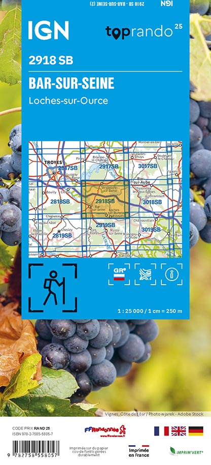 L'indispensable carte de randonnée IGN 2918SB. D'une très grande précision elle contient tous les détails existants sur le terrain : voies de communication jusqu'au moindre sentier, constructions jusqu'au hangar, bois, arbre isolé, rivière, source... Sans oublier la représentation du relief par des courbes de niveau. Les sentiers balisés et les informations touristiques sont également représentées.